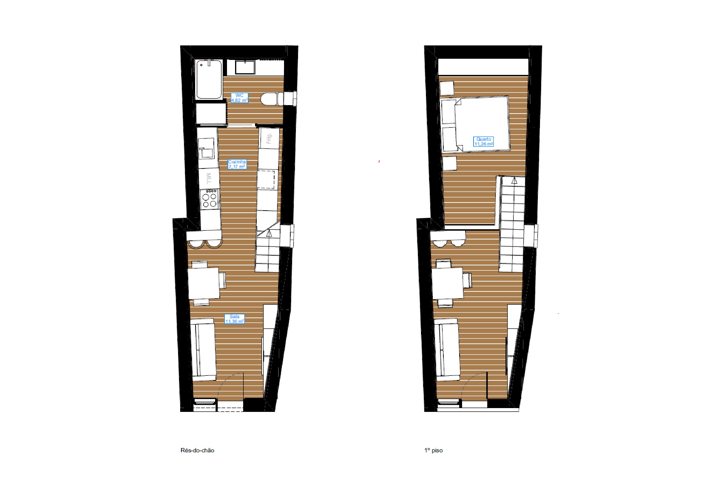 A fachada original foi preservada com atenção ao detalhe, mantendo a identidade local e o carácter típico da construção portuguesa. No interior, a casa foi completamente redesenhada com um conceito de open space, criando uma vivência fluida, luminosa e funcional. O espaço conta com duas claraboias elétricas Velux que garantem luz natural durante todo o dia.